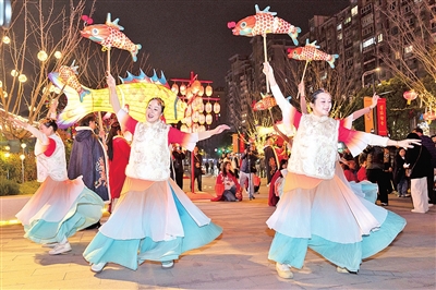 ⑥ 2月13日在上海莘庄灯会拍摄的鱼灯舞表演。马年春节临近,各地年味愈加浓郁。新华社记者 王翔摄