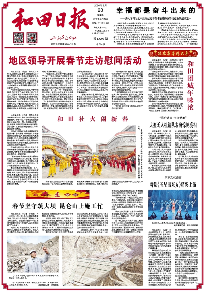 地区融媒讯 (记者 努尔古再丽 宋俞霖)2月17日,和田市红星里商业街锣鼓喧天、年味十足,一场精彩纷呈的新春社火活动热闹上演。各族群众欢聚一堂,在喜庆热闹的民俗表演中喜迎新春,共庆佳节,现场处处洋溢着欢乐、祥和、团结的节日氛围。