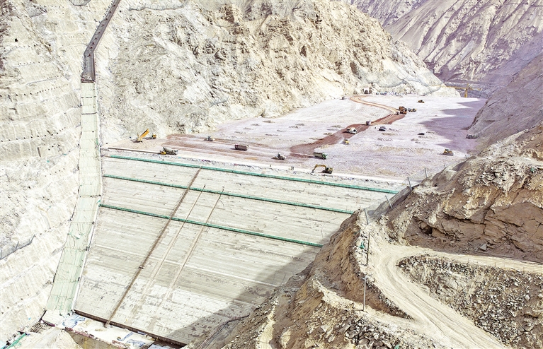 据了解,目前,项目主体工程土石方开挖已全面收尾,整体转入大坝填筑与混凝土浇筑高峰期。大坝设计填筑高度233.5米,现已填筑至105米,今年计划填筑至188米,工程总体进度已完成70%,正稳步向最终坝高目标迈进。