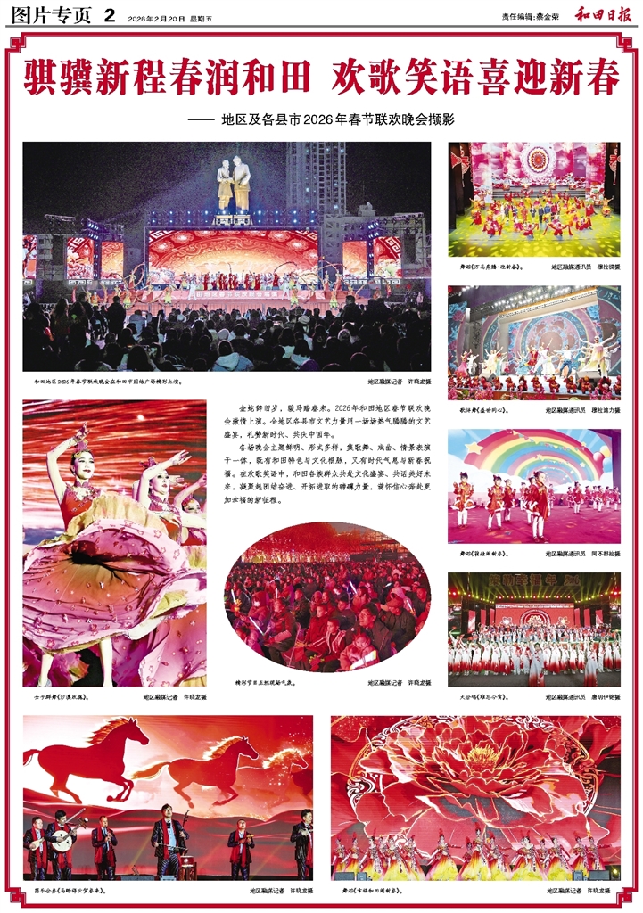 金蛇辞旧岁,骏马踏春来。2026年和田地区春节联欢晚会激情上演。全地区各县市文艺力量用一场场热气腾腾的文艺盛宴,礼赞新时代、共庆中国年。 各场晚会主题鲜明、形式多样,集歌舞、戏曲、情景表演于一