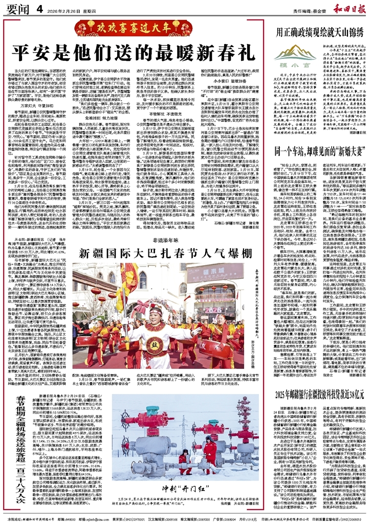 - 平安是他们送的最暖新春礼 当火红的灯笼挂满街头,当团圆的欢笑流淌在千家万户,对于新疆广大公安民警辅警来说,春节更多的是坚守。他们或许错过了与家人围坐守岁的年夜饭,却没有错过群众危急关头的求助;他们或许无法在节日里陪伴亲人,