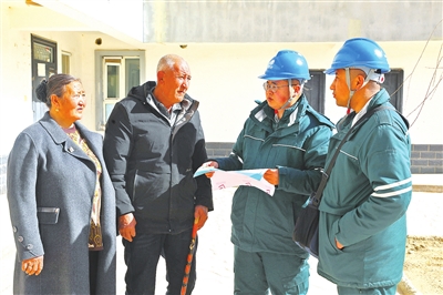 新春走基层的脚步,随巡线队走遍沙海,也走进了达里雅布依新村的街巷。巡检间隙,陆泽文和同事深入村内开展线路特巡,检查线路运行情况;走访村民家庭,普及安全用电知识,还与村民一同贴春联、话家常。