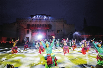 约特干故城景区行浸式表演《万方乐奏有于阗》。