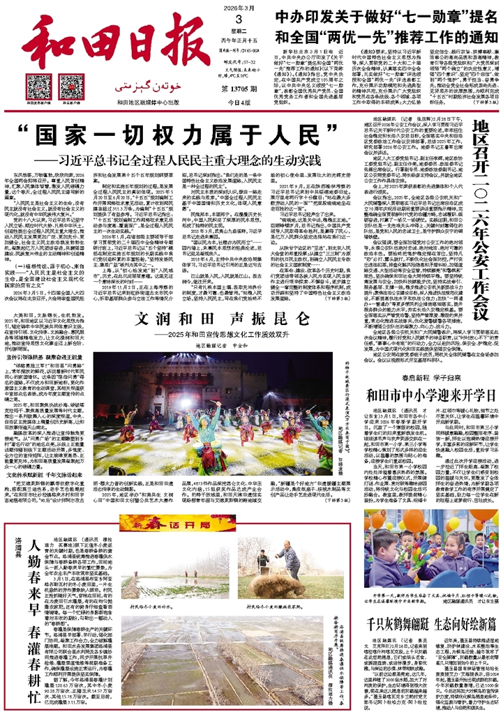 - 文润和田 声振昆仑 大美和田,文脉绵长,生机勃发。2025年,和田地区以习近平文化思想为指引,锚定铸牢中华民族共同体意识主线,在宣传引领、文化传承、文旅融合、惠民服务等领域精准发力,让文化浸润和田大地,推动宣传思想文