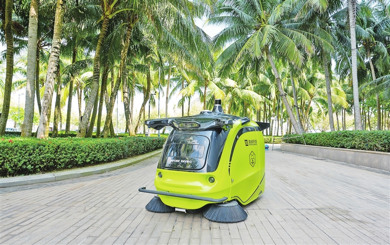 小蜜蜂智慧清洁机器人在位于海南省琼海市潭门镇的中国(海南)南海博物馆周边作业(3月25日摄)。日前,海南省以琼海市博鳌镇为试点,推进首批智慧环卫示范建设。智慧环卫设施在博鳌亚洲论坛2026年年会期间集中亮相,以精准调度、快速处置、高标准保障的表现,成为论坛城市服务保障的亮点成果。新华社记者 刘莲芬摄