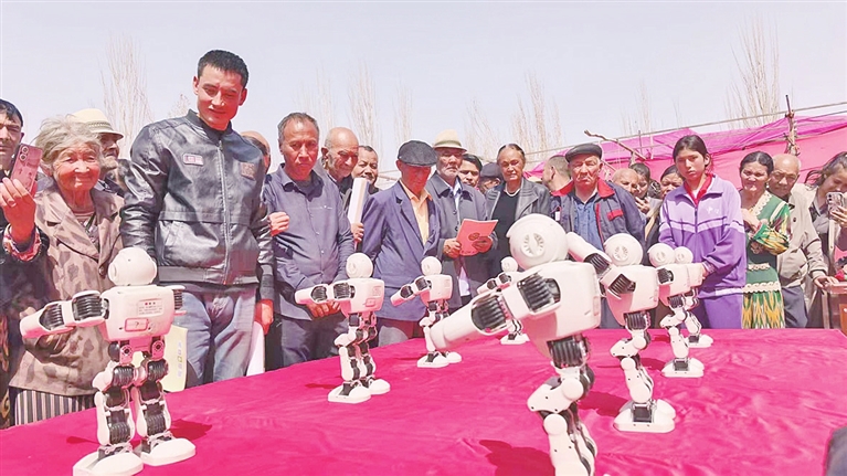 舞台之上好戏连连,舞台之下便民服务暖心同行。活动现场设置综合服务区域,智能机器狗互动演示吸引大人孩子驻足体验;流动图书车为群众提供沉浸式阅读服务;书画爱好者现场挥毫泼墨,免费赠送书画作品;医护人员坐诊开展健康咨询、血压测量等义诊服务;普法志愿者以快板宣讲的趣味形式,普及《中华人民共和国民法典》知识,让政策法规入脑入心。“赶一趟巴扎,既能看节目、学知识,还能免费测血压,实在太方便了。”前来参与活动的村民阿依姆妮沙连连点赞。