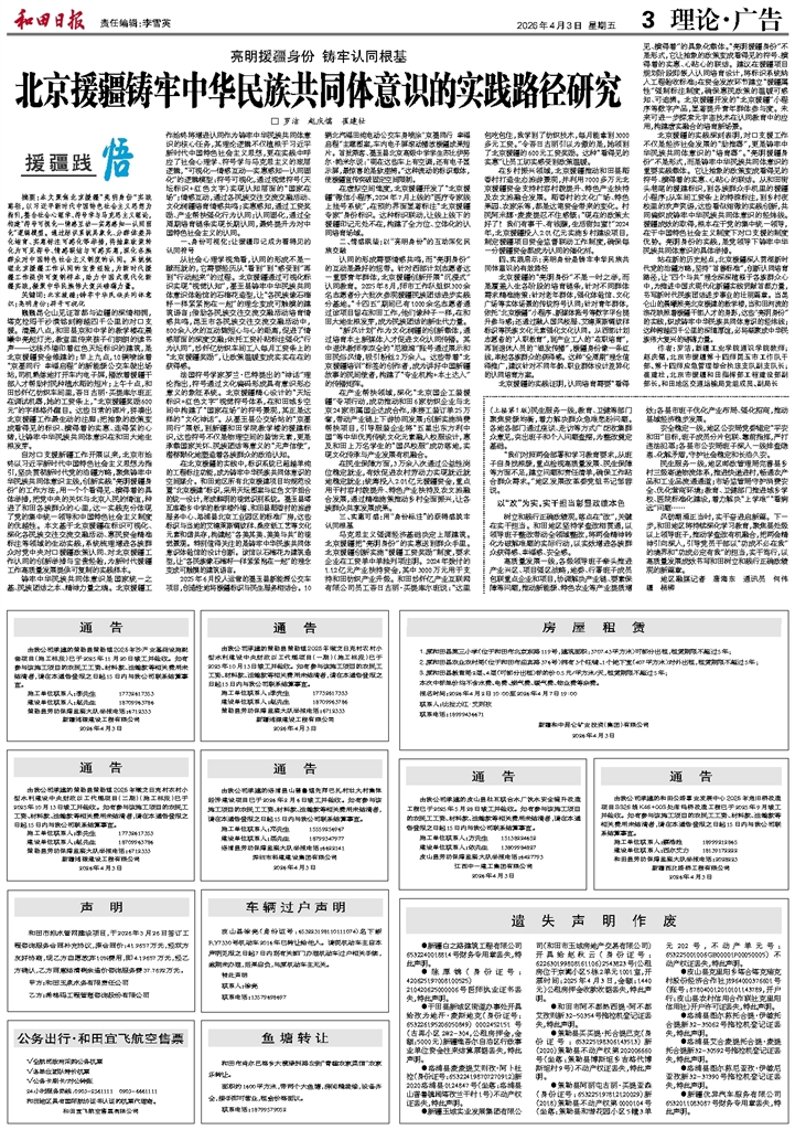 - 北京援疆铸牢中华民族共同体意识的实践路径研究 摘要:本文聚焦北京援疆“亮明身份”实践路径,以习近平新时代中国特色社会主义思想为指引,整合社会心理学、符号学与马克思主义理论,构建“符号可视化—情感互动—实惠感知—认同固化”逻辑模型。通过标识系统